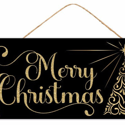 12"Hx10"L MERRY CHRISTMAS ORN SIGN - WHITE/BLACK/GREY - AP7410A6