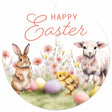 12"DIA EASTER W/ANIMALS & FLORALS SIGN - WHITE/BEIGE/CORAL/YELLOW/GREEN - MD1719