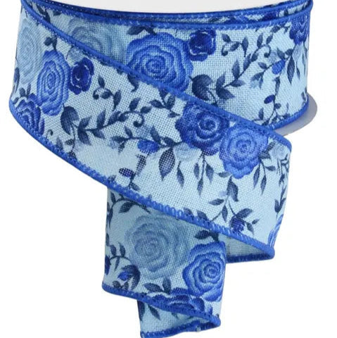 1.5"X10YD MINI ROSES - PALE BLUE/MULTI BLUE - RGE117903
