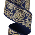 2.5"X10YD DELUXE WAVY FLORAL - NAVY BLUE/GOLD - RGE196219