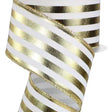 2.5"X10YD METALLIC VERTICAL STRIPES - WHITE/GOLD - RGE1429C6