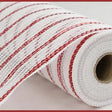 10.25"X10YD POLY/FAUX JUTE/METALLIC MESH - WHITE/RED - RY8018A2