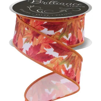 1.5"X10YD FALL LEAVES - IVORY/RED/YELLOW/ORANGE/GREEN - LS1130C2