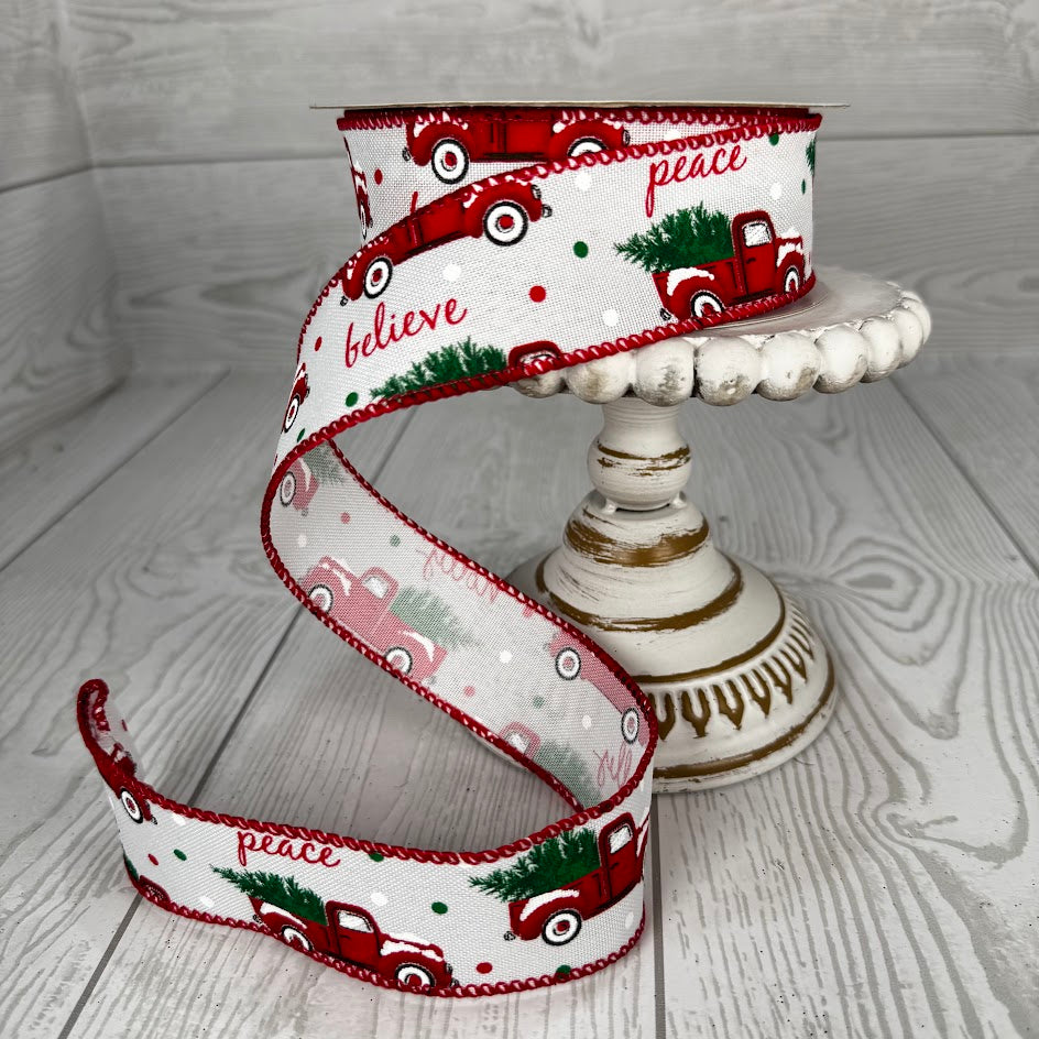 1.5"X10YD TRUCK WITH TREE / MULTICOLOR DOTS - RED/GREEN/WHITE - RGB10008R