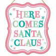 7"H X 6"L TIN MATTE SANTA SIGNS - HERE COMES SANTA - WHITE/PINK/GREEN/TEAL - MD1213A7